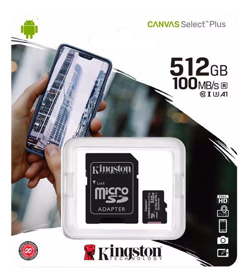 Kingston’s Canvas Select Plus microSD is compatible with Android devices and designed with A1-rated performance. It offers improved speed and capacity for loading apps faster and capturing images and videos in multiple capacities up to 512 GB*. Powerful in performance, speed and durability, the Canvas Select Plus microSD is designed for reliability when shooting and developing high-resolution photos or filming and editing full HD videos. Kingston Canvas cards are tested to be durable in the harshest environments and conditions so you can take them anywhere with confidence that your photos, videos and files will be protected. Available with a lifetime warranty.
