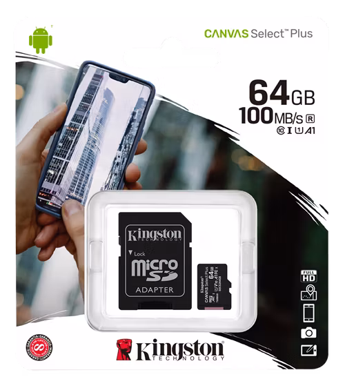 Kingston’s Canvas Select Plus microSD is compatible with Android devices and designed with A1-rated performance. It offers improved speed and capacity for loading apps faster and capturing images and videos in multiple capacities up to 512 GB*. Powerful in performance, speed and durability, the Canvas Select Plus microSD is designed for reliability when shooting and developing high-resolution photos or filming and editing full HD videos. Kingston Canvas cards are tested to be durable in the harshest environments and conditions so you can take them anywhere with confidence that your photos, videos and files will be protected. Available with a lifetime warranty.