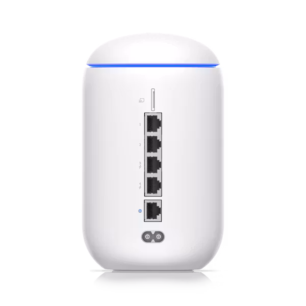A fully-featured UniFi OS Console with an integrated security gateway, WiFi 6 access point and ports supporting PoE output.