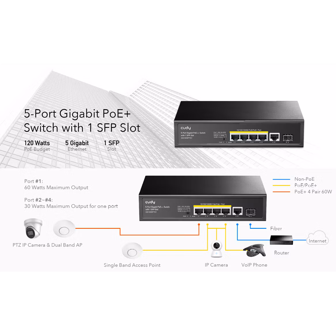 Cudy 5-Port Gigabit PoE+ Switch med SFP port