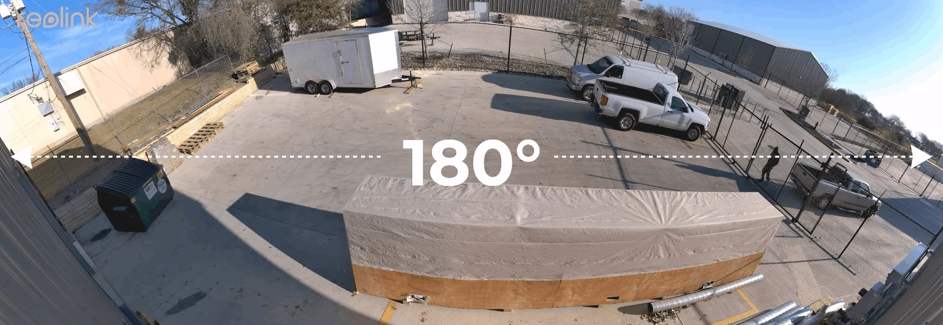 Lyskaster og Dual-Lens overvåkingskamera i ett! Se 180° synsvinkel i 4K bildekvalitet – døgnet rundt.