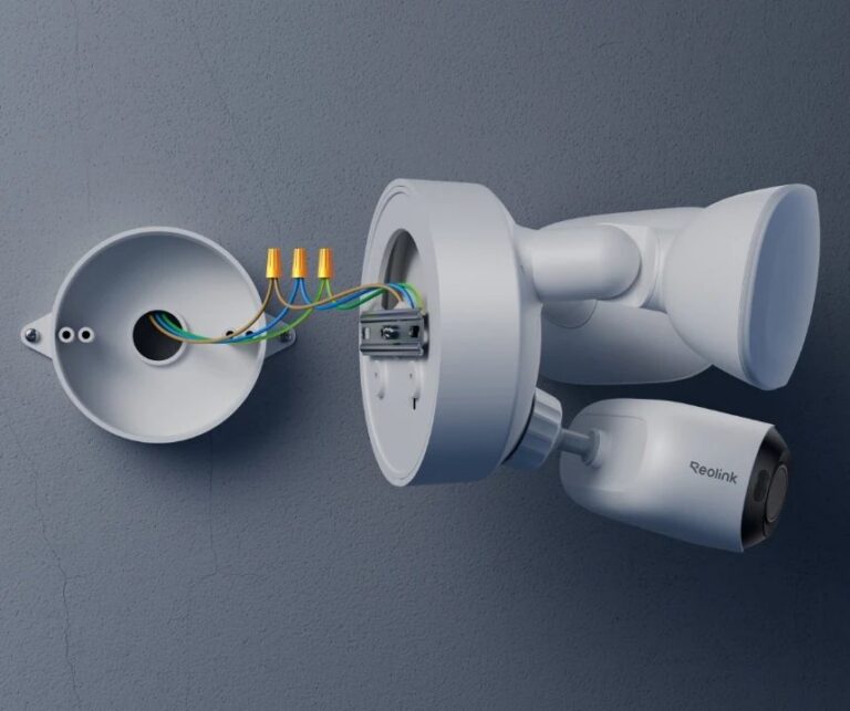 | Reolink Elite Floodlight WiFi tilkobles som en del av det faste elektriske anlegget, på samme måte som f.eks. lysarmaturer og stikkontakter. Slik installasjon må utføres av autorisert elektriker. Alternativt kan en koble til selv ved bruk av Reolink RLA-PP1 strømkabel. |