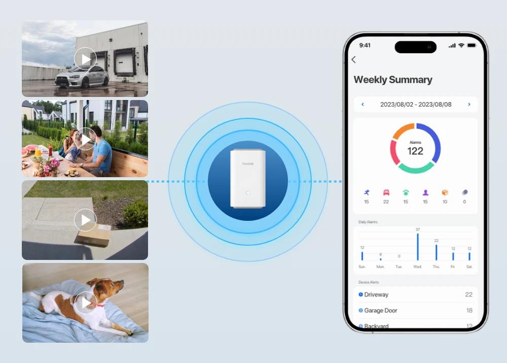 Smart Alarm senterReolink Home Hub Pro kobles sømløst til smarte kameraer med gratis deteksjon av personer, kjøretøy og dyr. Ved bevegelse kan lydvarsel aktiveres – slik at du alltid er oppdatert. Gjør opplevelsen enda mer personlig ved å velge mellom ulike ringetoner eller legge til din egen varsellyd. | ![]() |