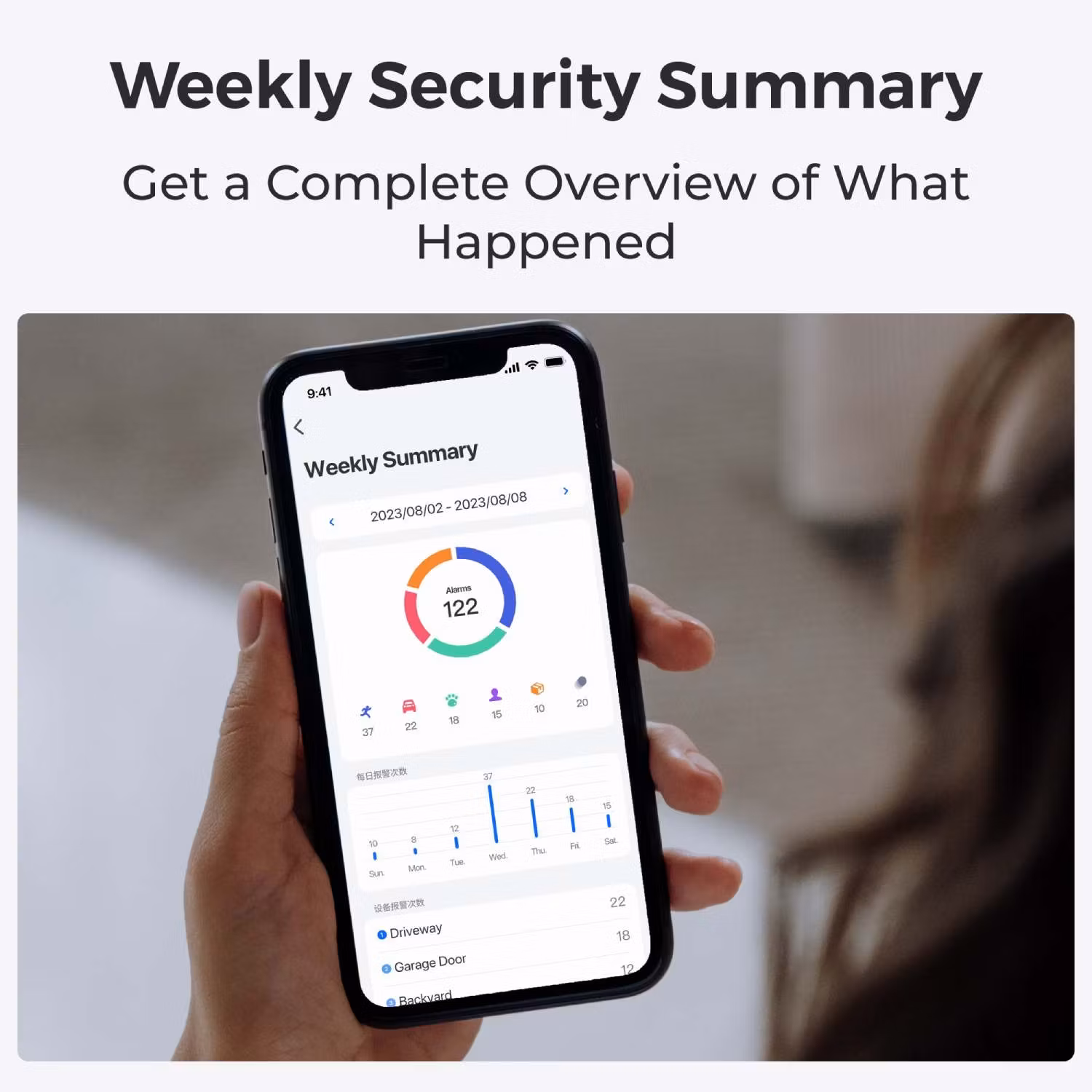 Reolink Home Hub utløser en alarm når et tilkoblet overvåkningskamera registrerer aktivitet. Velg blant flere alarmtoner, eller tilpass din egen for en mer personlig varsling.