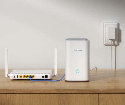 Koble Reolink Home Hub til strøm, og deretter til routeren din med nettverkskabelen som følger med.