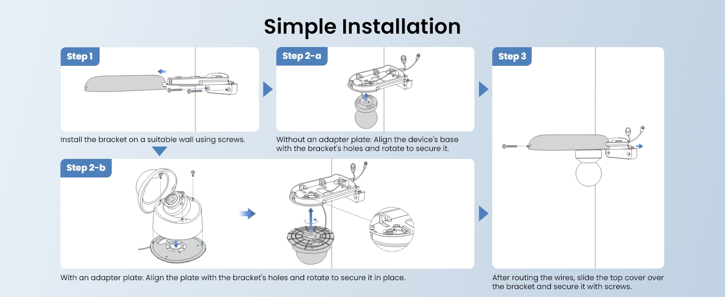 Praktisk veggfeste for Reolink domekameraer med innebygd kabelhåndtering for ryddig og sikker montering av kamera med god oversikt.