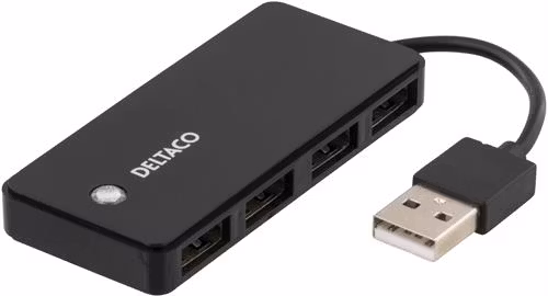 Deltaco USB 2.0 hub, 4x type A hunn, svart