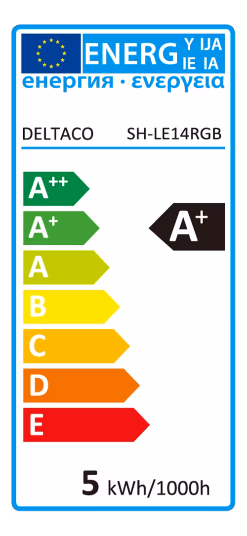 DELTACO SMART HOME LED lamp, E14, WiFI 2.4GHz, 5W, 470lm, dimmable, 2700K-6500K, 220-240V, RGB